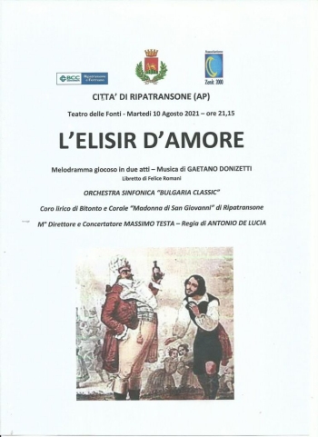 L'ELISIR D'AMORE di GAETANO DONIZETTITeatro delle Fonti - Ripatransone (AP) - 10 agosto 2021 M° MASSIMO TESTA, DIRETTORE Massimo Testa Direttore d'Orchestra Home | Biografia | Eventi | Libri & CD | Associazione Zenit 2000 | Le Note Ritrovate Copyright © 2025 Tina Rigione.All rights reserved.PROMOTION | CONSULTING | EVENTS | NEW IDEAS