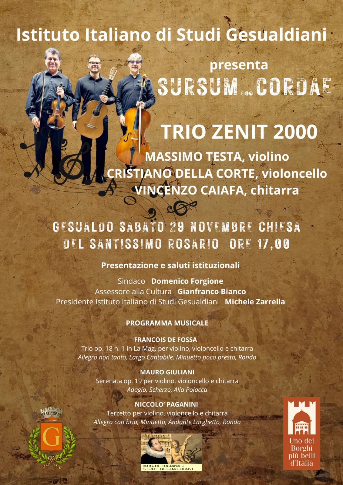 SURSUM. . . CORDAECHIESA DEL SANTISSIMO ROSARIO - GESUALDO (Av) - 29 NOVEMBRE 2025TRIO ZENIT 2000: MASSIMO TESTA, VIOLINO, CRISTIANO DELLA CORTE, VIOLONCELLO, VINCENZO CAIAFA, CHITARRAMUSICHE DI F. DE FOSSA, M. GIULIANI, N. PAGANINI Massimo Testa Direttore d'Orchestra Home | Biografia | Eventi | Libri & CD | Associazione Zenit 2000 | Le Note Ritrovate Copyright © 2025 Tina Rigione.All rights reserved.PROMOTION | CONSULTING | EVENTS | NEW IDEAS